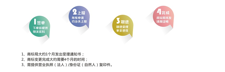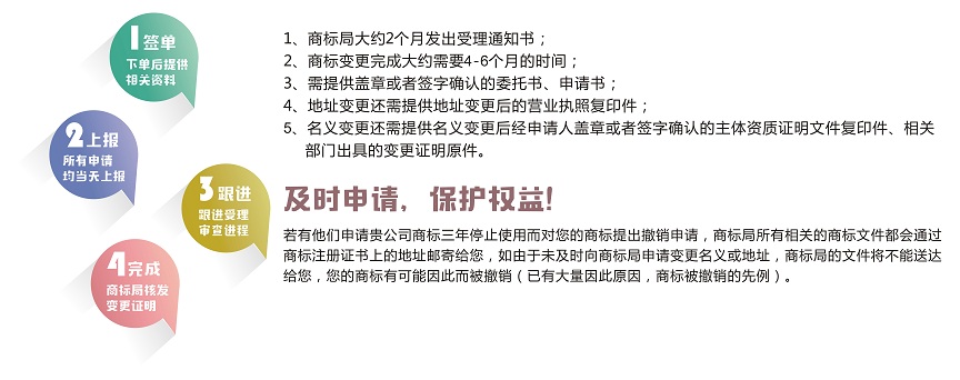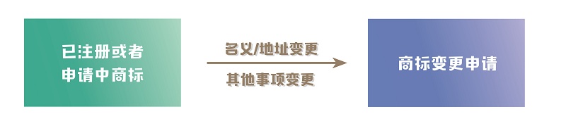 商標(biāo)核準(zhǔn)注冊后,商標(biāo)注冊人的名義、地址或其他注冊事項(xiàng)發(fā)生變更的,應(yīng)當(dāng)向商標(biāo)局申請辦理相應(yīng)變更手續(xù)。變更商標(biāo)注冊人名義或地址的,商標(biāo)注冊人應(yīng)將其全部注冊商標(biāo)一并變更。商標(biāo)變更可以是已經(jīng)獲準(zhǔn)注冊的商標(biāo),也可以是在申請中的商標(biāo)。
