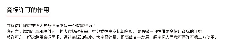 商標(biāo)注冊人可以通過簽訂商標(biāo)使用許可合同,許可他人使用其注冊商標(biāo)。許可他人使用其注冊商標(biāo)的,許可人應(yīng)當(dāng)在許可合同有效期內(nèi)向商標(biāo)局備案并報(bào)送備案材料。備案材料應(yīng)當(dāng)說明注冊商標(biāo)許可人、被許可人、許可期限、許可使用的商品或者服務(wù)范圍等事項(xiàng)。