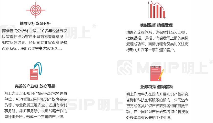 1、專業(yè)知識產(chǎn)權(quán)背景 明上利用自己專業(yè)化的知識產(chǎn)權(quán)背景,為企業(yè)知識產(chǎn)權(quán)領(lǐng)域業(yè)務(wù)提供專業(yè)解決、代理申報(bào)服務(wù)并完善申報(bào)工作中關(guān)于企業(yè)自主知識產(chǎn)權(quán)的專業(yè)問題。