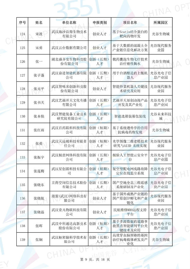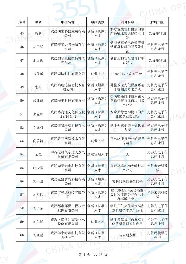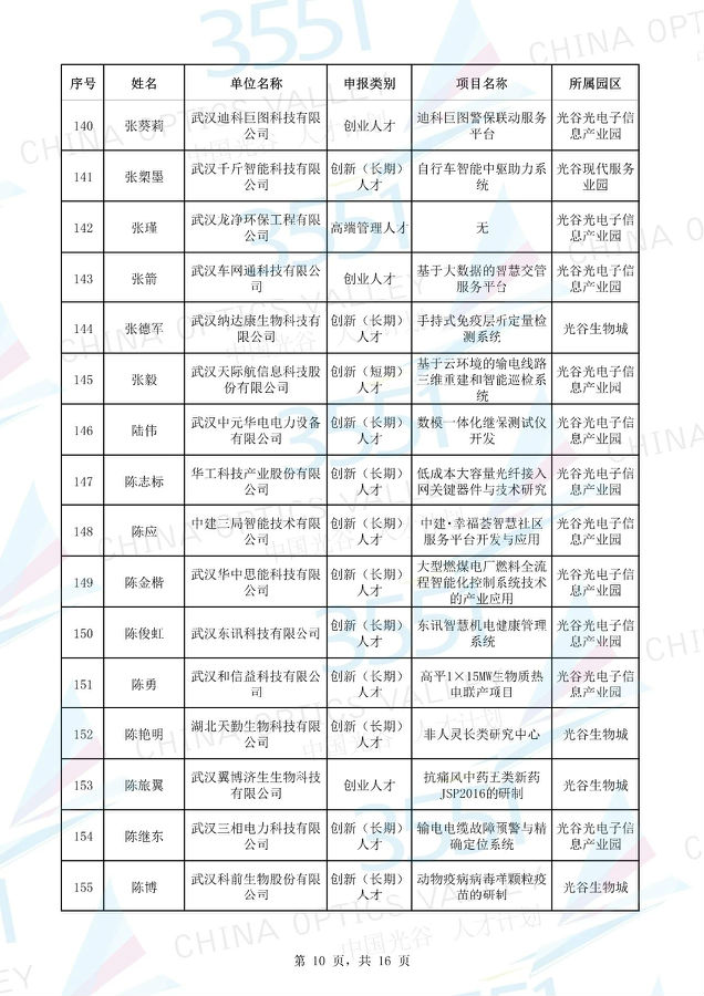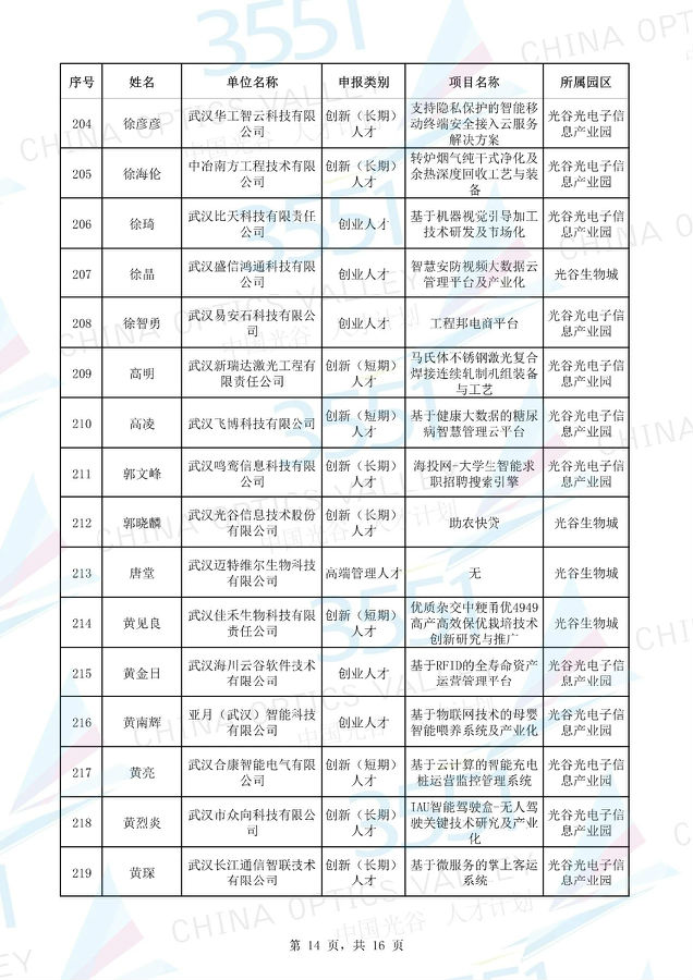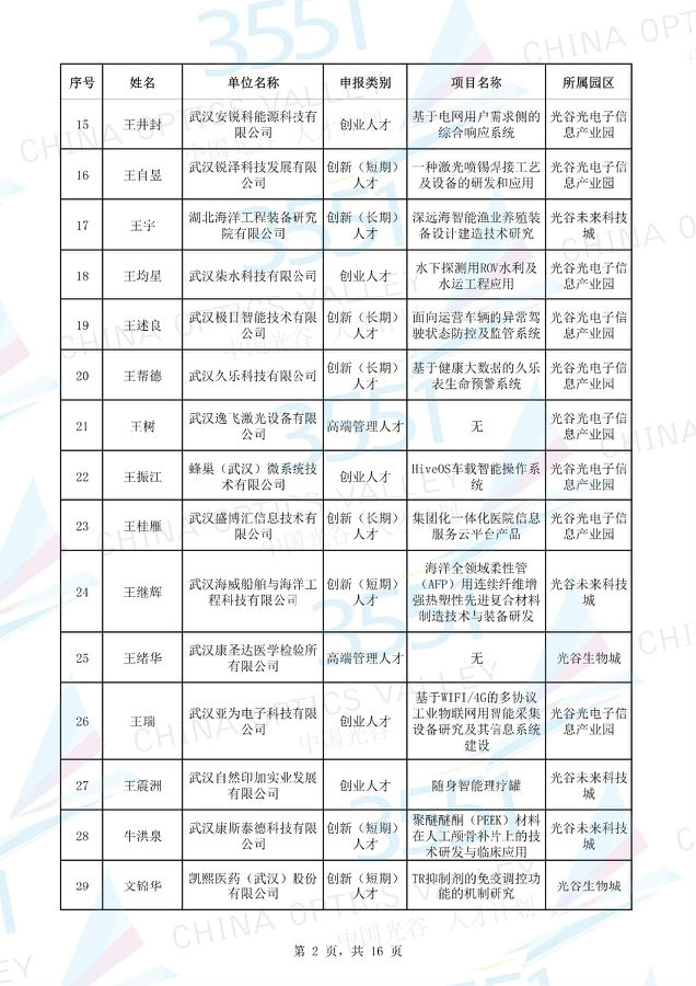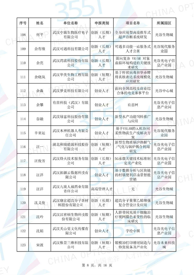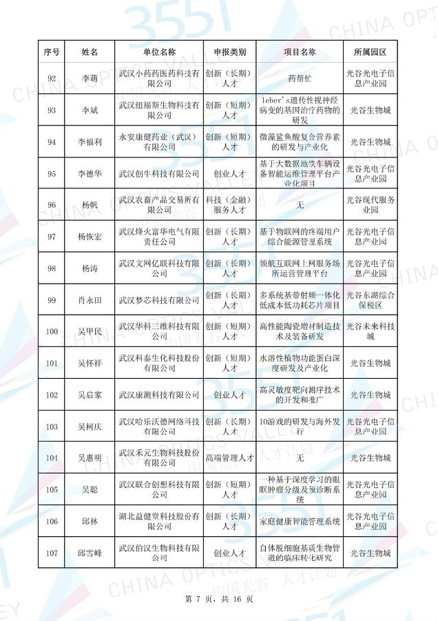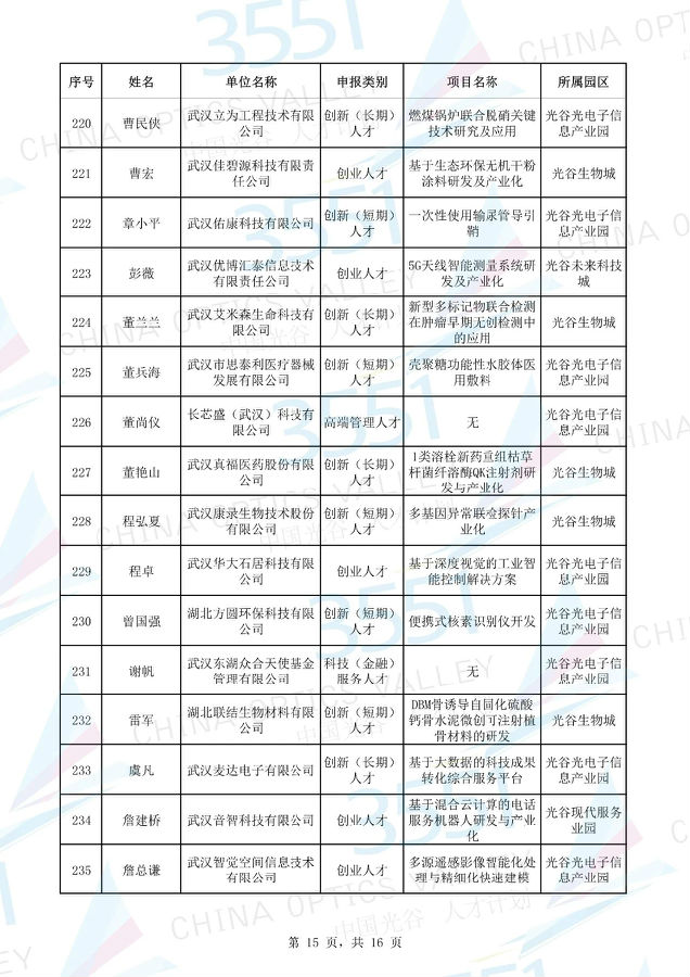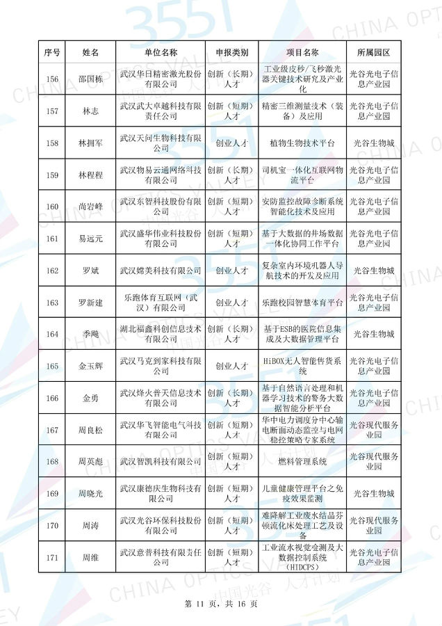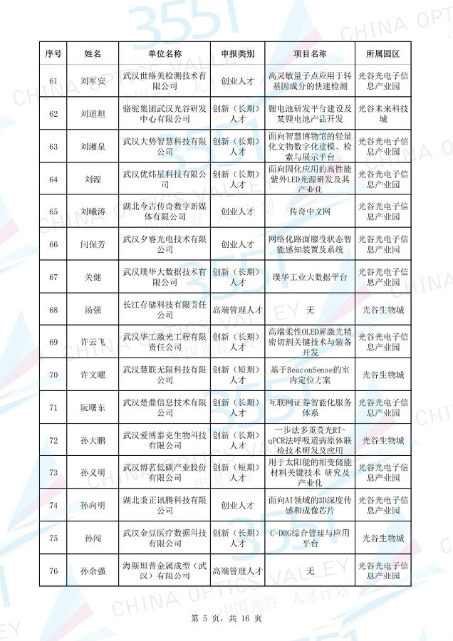 附:武漢東湖高新區(qū)第十一批“3551光谷人才計(jì)劃”入圍實(shí)地考察候選人才項(xiàng)目名單