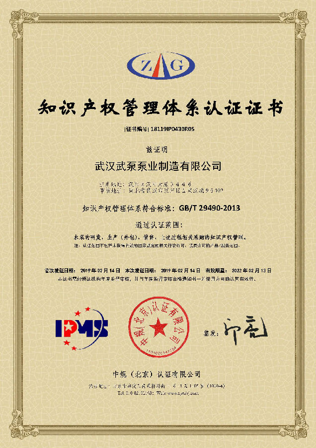 祝賀丨武漢武泵泵業(yè)制造有限公司獲得國(guó)家級(jí)知識(shí)產(chǎn)權(quán)貫標(biāo)認(rèn)證!